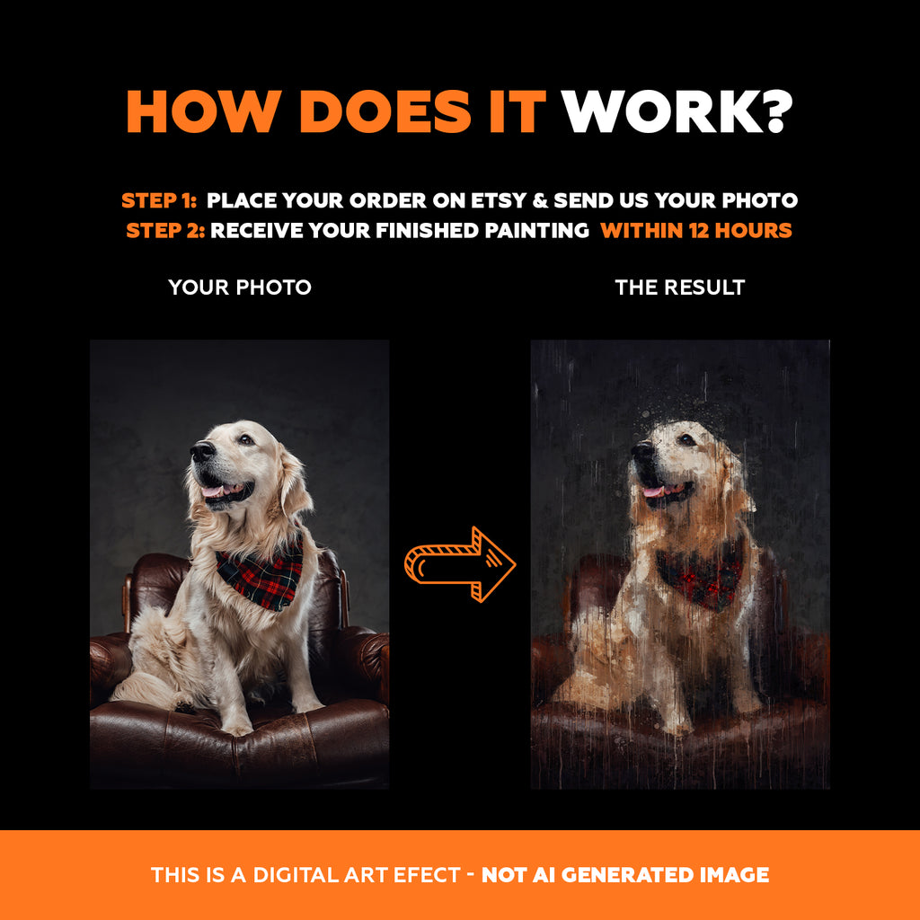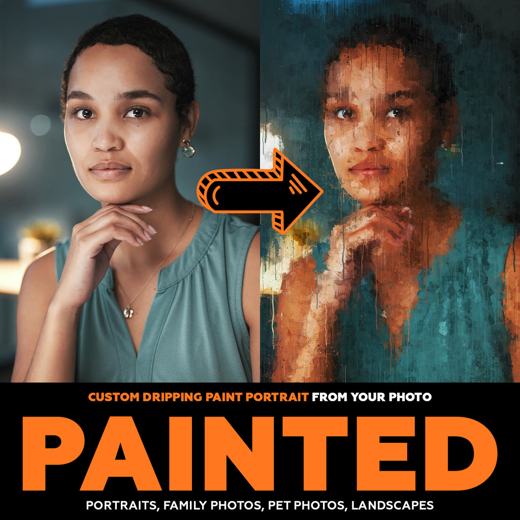 Upload your photo today and we’ll turn it into a striking dripping-paint portrait made just for you.